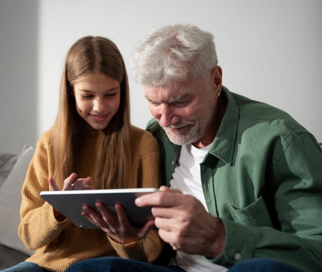 Tudo isso funciona direto no celular, com uma interface fácil para o idoso e familiares acompanharem juntos.